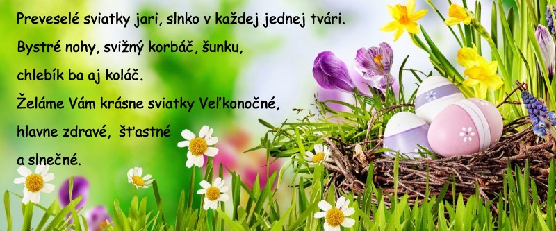Starosta obce a zamestnanci Obecného úradu Vám prajú príjemné prežitie Veľkonočných sviatkov.