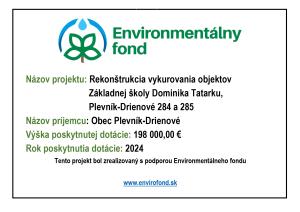 Tento projekt bol zrealizovaný s podporou Environmentálneho fondu Rok poskytnutia dotácie: 2024 Výška poskytnutej dotácie: 198 000,00 €